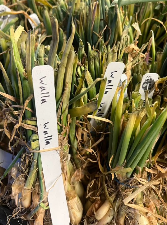 Southern Bell Red, Walla Walla Sweet, Texas Super Sweet, Super Star, Red Zeppelin, Ringmaster, Patterson, Ailsa Craig, Red River, Blush, Borettana Cipollini, Lancelot Leeks, Red Shallots